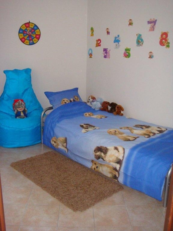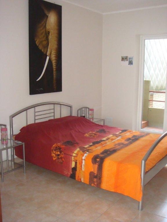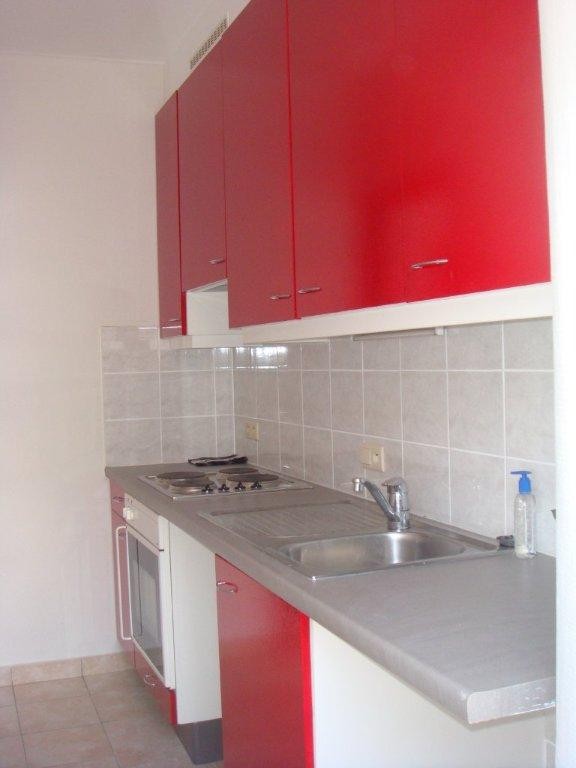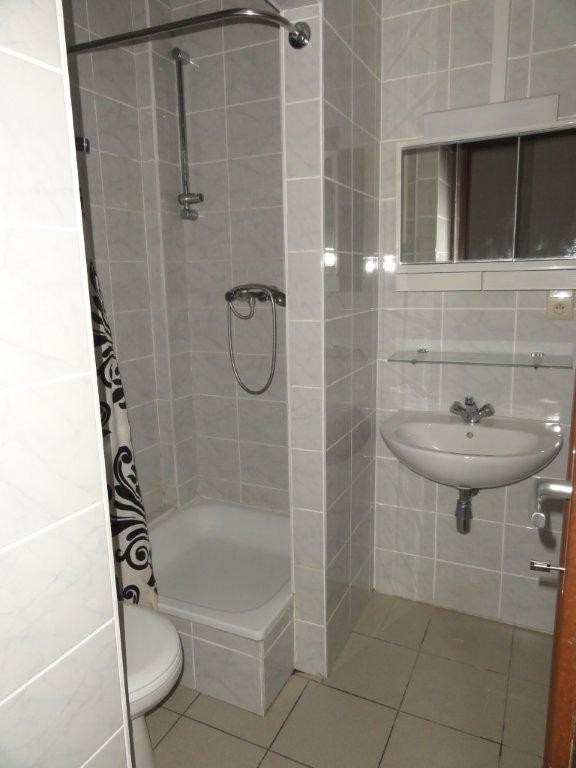 Woonkamer, ingerichte keuken, badkamer met douche, lavabo en toilet, 2 slaapkamers.