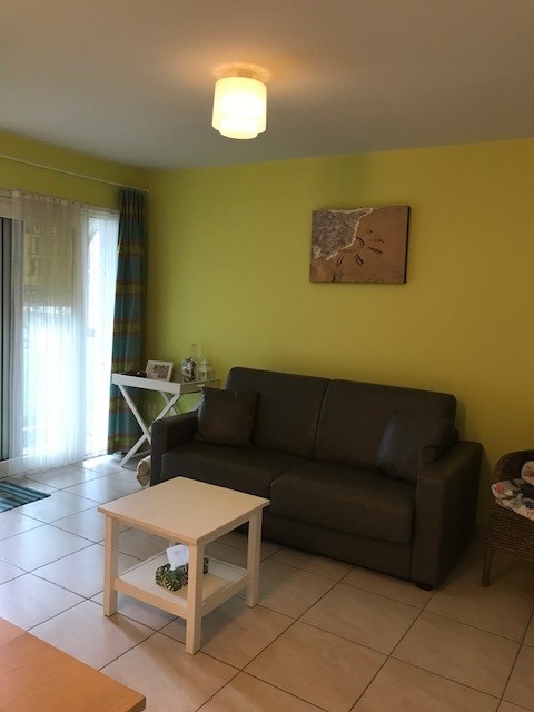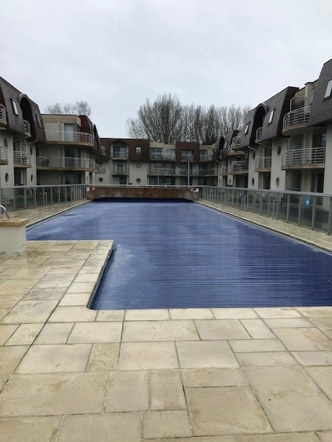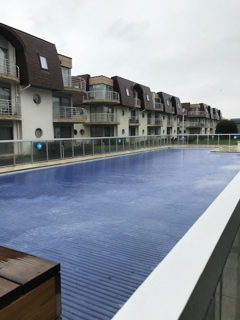 Bestaat uit: inkomhall met aparte slaaphoek met stapelbed, mooi ingerichte living met divanbed en aansluitend terrasje, open volledig ingerichte keuken met vaatwas, één slaapkamer met tweepersoonsbed , berging en mogelijkheid tot aankoop van twee parkeerplaatsen waarvan één ondergrondse met fietsenrek en één buiten maar binnen het afgesloten domein.