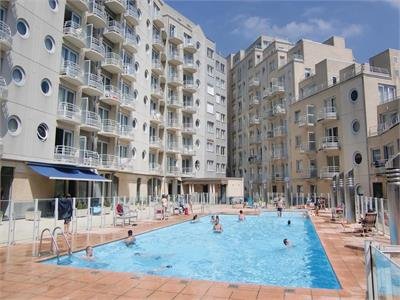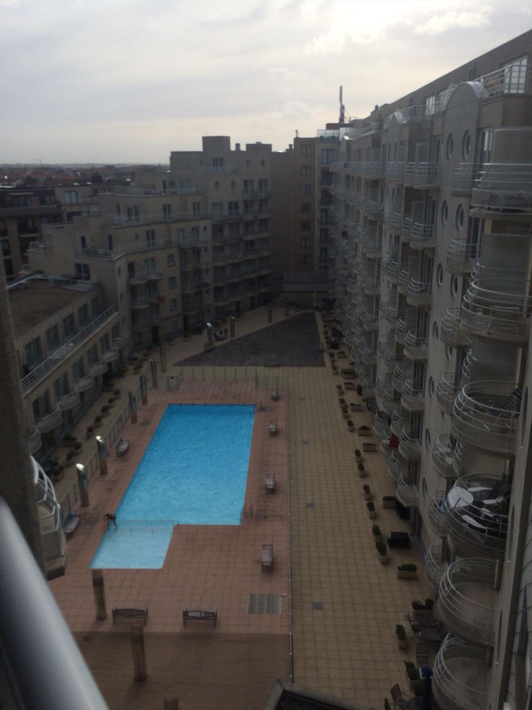 Troef in deze residentie : nog te koud of teveel wind om op strand te zonnen ? Geen probleem heerlijk ingesloten ruim zonneterras met zwembad !