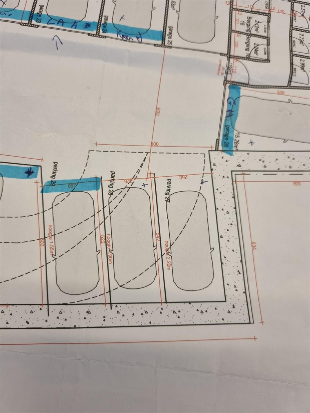 Tenslotte werd uitermate veel aandacht geschonken aan de zeer gemakkelijke toegangshellingen en manoeuvreerruimte in het volledig overdekt garagecomplex waarvan u ondervermeld de plannen van diverse verdiepingen kan terugvinden.