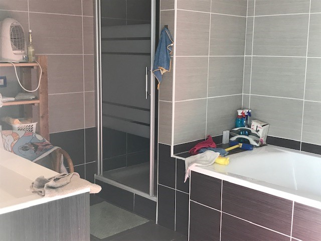 Op de verdieping een zeer ruime slaapkamer, badkamer met douche, toilet en lavabo en nog 2 kleinere slaapkamers.