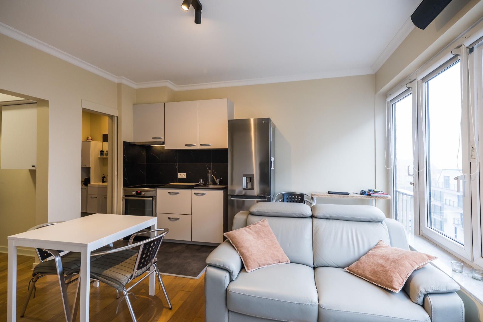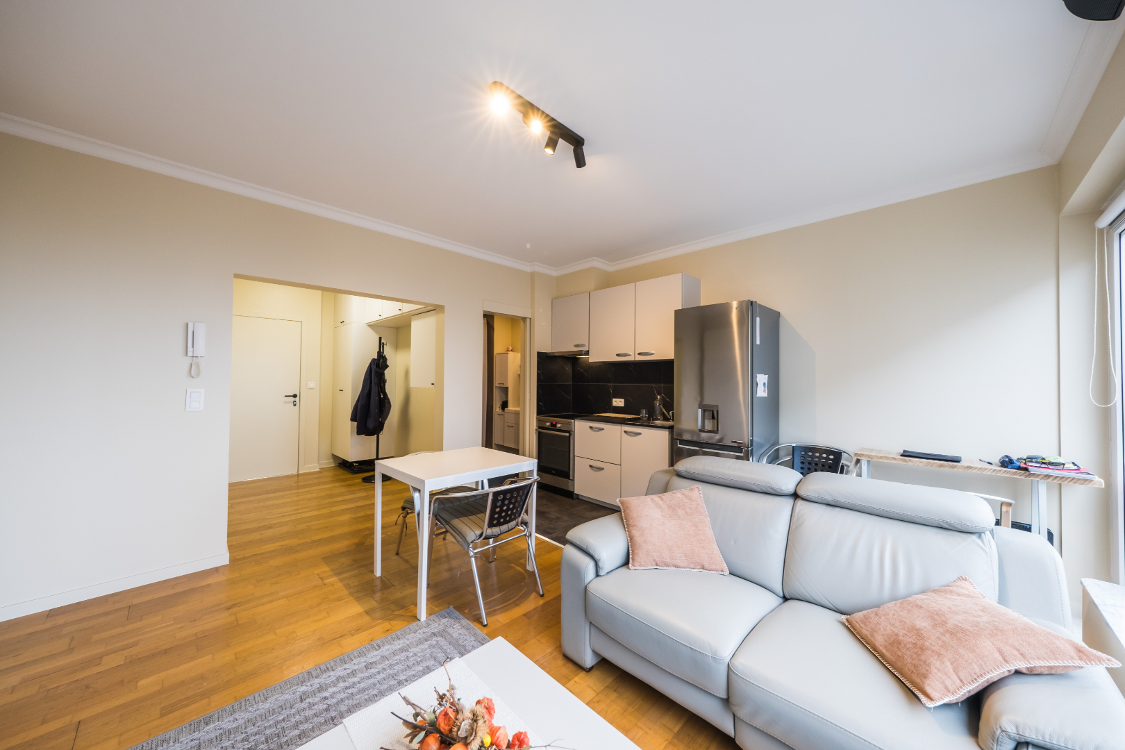 Extra troeven: gemeenschappelijk fiets- en vuilnislokaal, lage residentiekosten, blanco keuring elektriciteit, individuele berging en kwalitatieve meubelen inbegrepen in de prijs.