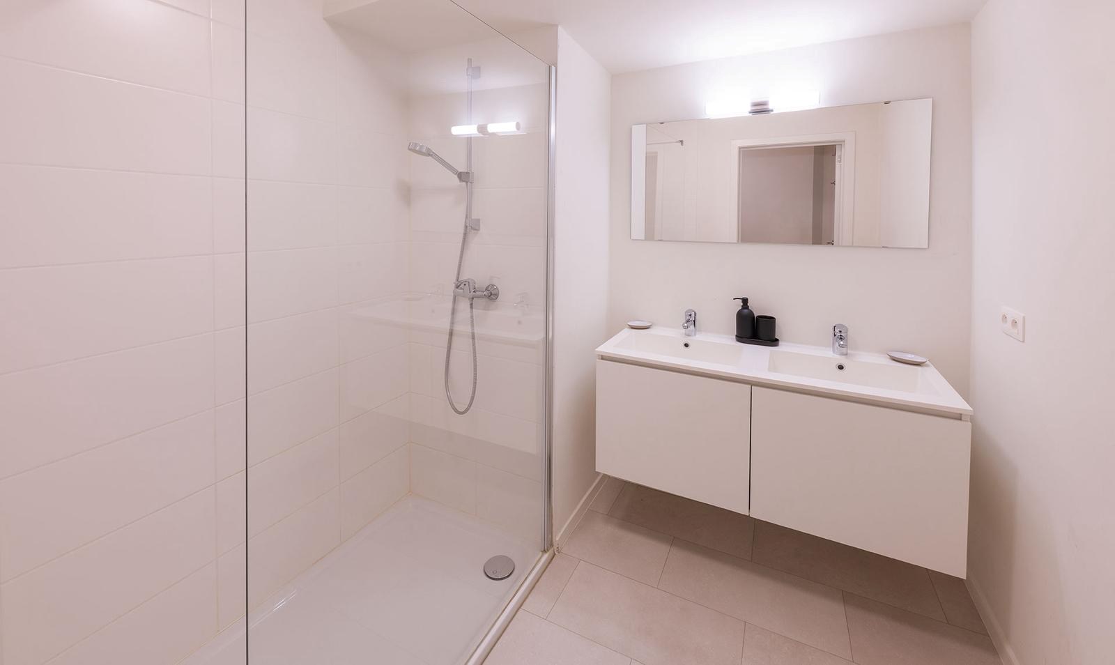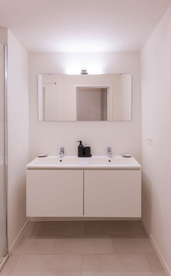 Het appartement beschikt over twee volwaardige slaapkamers en een moderne badkamer met een comfortabele inloopdouche. Daarnaast is er een apart toilet, wat zorgt voor extra gebruiksgemak. In de kelder bevindt zich bovendien een ruime berging, ideaal voor extra opslag en praktisch comfort.