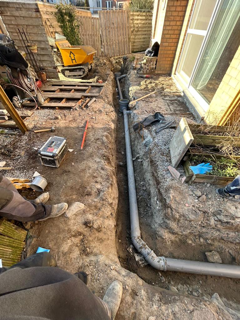 Vervolgens werd op de minst invasieve wijze een opening gemaakt en werden de rioleringsbuizen vanaf de valbuis tot de openbare riolering heraangelegd. Dit probleem is nu van de baan en dit op duurzame wijze.